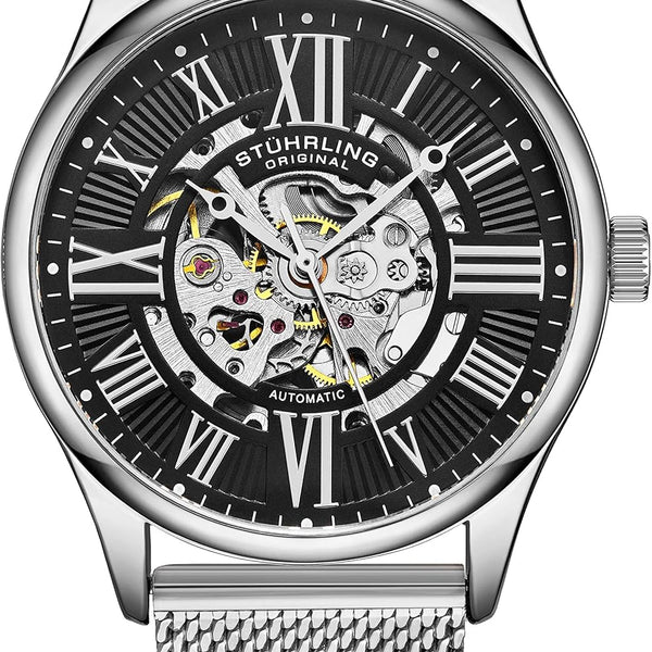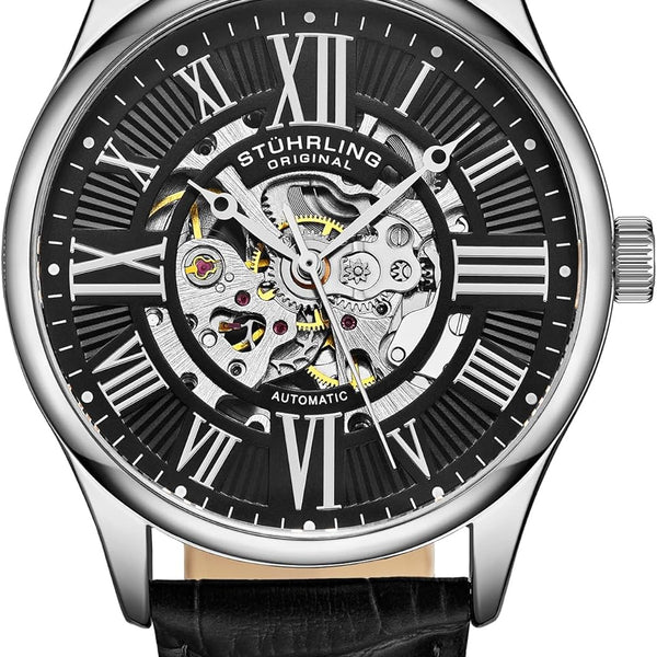 Die Stuhrling Emperor VT 324 Automatic 49mm Skeleton Herrenuhr von ÖZENSAAT ist eine elegante Armbanduhr mit einem mechanischen Automatikaufzug. Das Gehäuse besteht aus Edelstahl in Silber und Schwarz, während das...