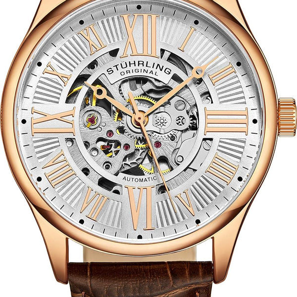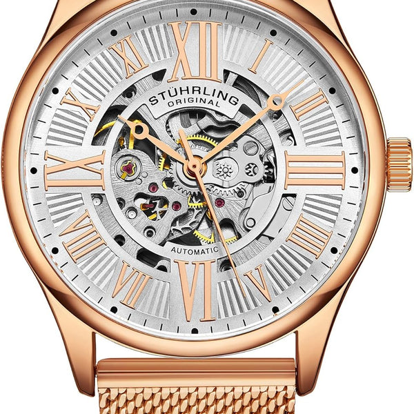 Präsentiert wird die exklusive STUHRLING Special Reserve Automatic Roségold Skeleton ÖZENSAAT, eine mechanische Herrenarmbanduhr mit automatischem Aufzug, die Eleganz und Ingenieurskunst vereint. Das Gehäuse aus feinem Roségold und die edle,...