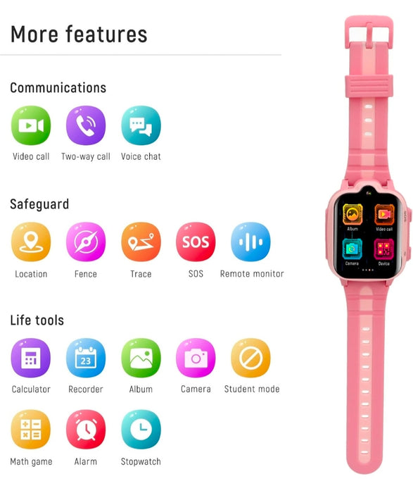 VIDEOANRUFE: Die Smartwatch für Kinder ermöglicht Videoanrufe. 4G SIM-Karte (nicht im Lieferumfang enthalten) wird unterstützt. Die Verwendung einer 4G-SIM-Karte mit eigener Telefonnummer und einem Daten- und Gesprächsvertrag ist unerlässlich, um Anrufe, Text- und Sprachnachrichten zu erhalten und zu tätigen und Ihren Standort anzuzeigen. Mit dieser Smartwatch können Sie auch Fotos machen, aufzeichnen